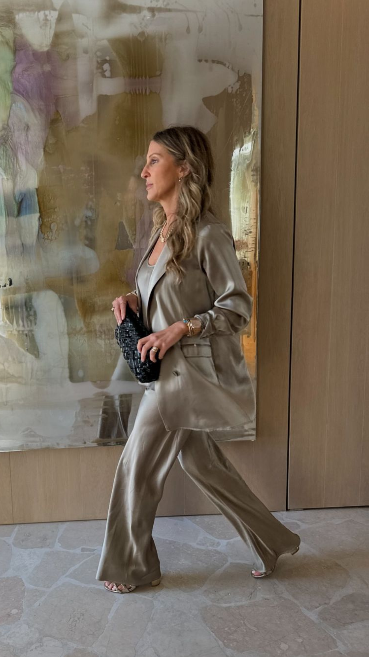 As seen on Natalie Jacobson, Sydney fashion stylist and personal shopper. Natalie embodies elevated ever day wear in the Bias Cut Pants and Relaxed Blazer Graphite, from the Golden Ratio Collection.