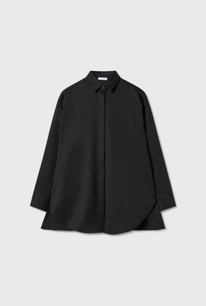 Wool Silk Crossover Shirt Black
