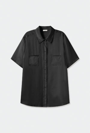 Clip Silk Short Sleeve Boyfriend Shirt Black