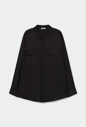 Cotton Silk Round Shirt Black