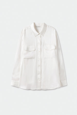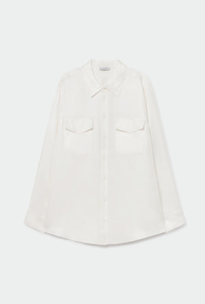 Cotton Silk Round Shirt White