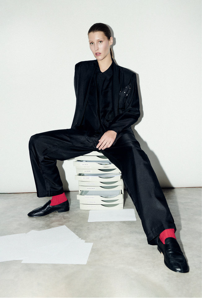 Wool Silk Crossover Shirt Black
