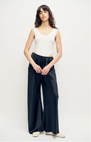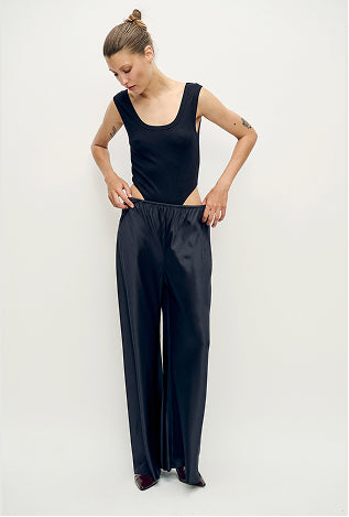 Cropped Bias Cut Pants Black Satin