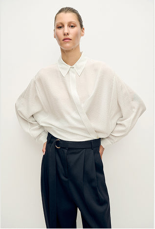Cotton Silk Crossover Shirt White